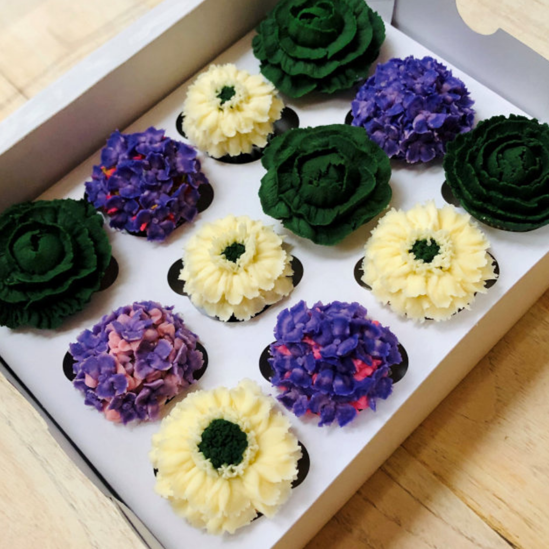 We can create Lifelike Flowers, Succulents and Cacti on the Cupcakes you Order, ensuring that you can get your Favorite Flower during Any Season.
