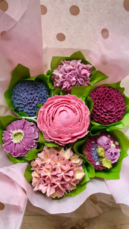 Premium Bouquet Cupcakes include Fresh Greenery to give your Cupcake Bouquet a Fresh, Live Flower Look!